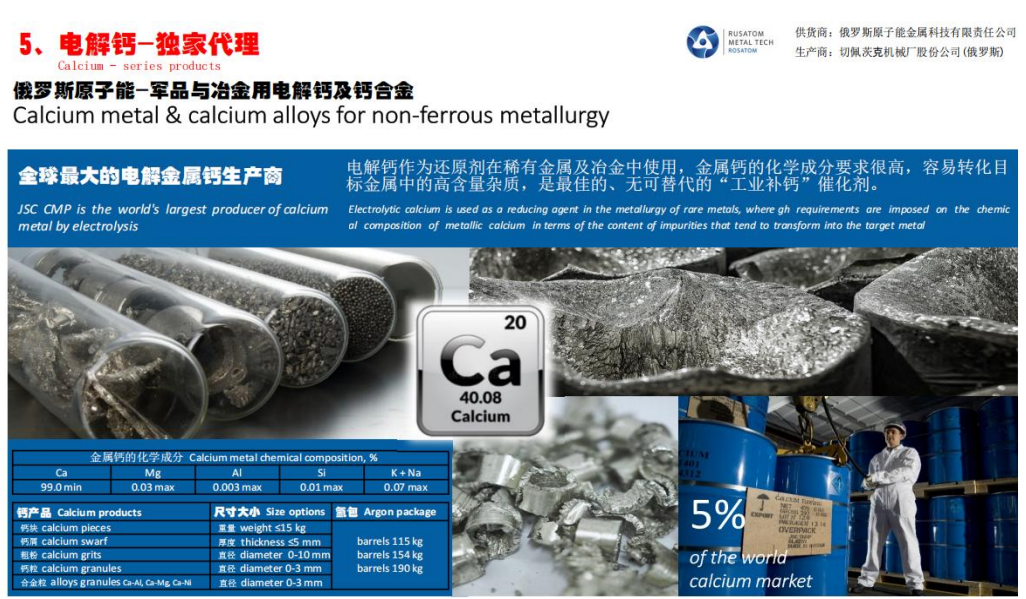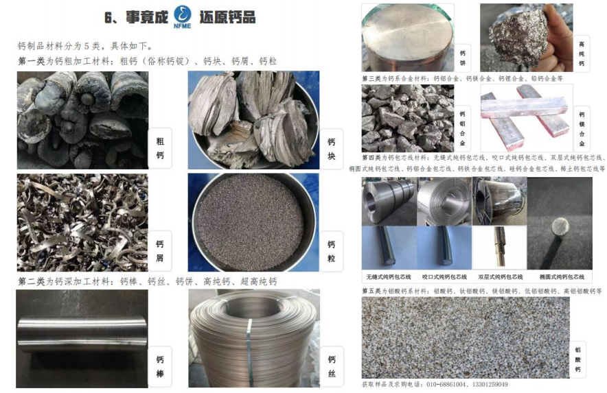· 事竟成贸易服务自主研发产品有:高纯钙、超高纯钙材料、超高纯钙基合金系列产品等。同时,我们还可以针对性提供重金属、稀贵金属贸易产品。